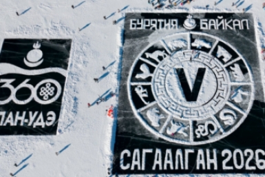 На Байкале создали гигантскую снежную открытку к празднованию Сагаалгана