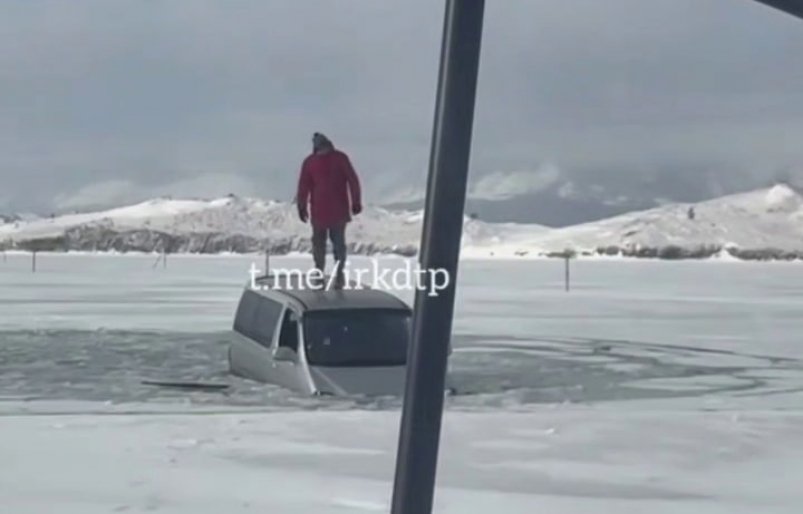 IrkutskMedia, 18 февраля. На Байкале произошёл очередной инцидент на льду: автомобиль провалился, а его водитель оказался на крыше машины, не понимая, как выбраться. Видео об инциденте появилось в тг-канале (18+) ДТП38RUS.