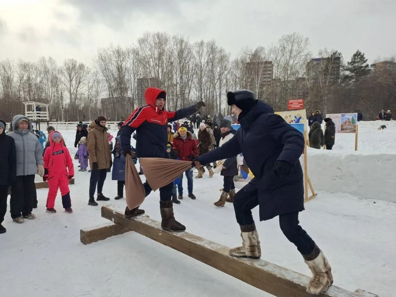 Главное празднование Масленицы развернулось на площади у стадиона "Труд". Для жителей и гостей подготовили программу с участием творческих коллективов Иркутска, работала интерактивная зона "Масленичный столб". Все желающие могли посостязаться в поднимании гирь и отжиманиях, в метании блинов, испытать себя при хождении на ходулях и поводить хоровод. Финалом стало сжигание чучела.