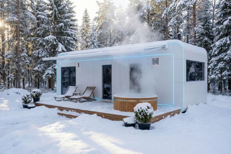 По словам собеседника, в рамках одного продуктового подхода могут существовать и банные комплексы с дровяной сауной, и полноценные дома для круглогодичного проживания с отдельной спальней и кухней-гостиной, и компактные модули для глэмпинга или приёма гостей. Отдельного внимания заслуживают решения со свободной планировкой — пустое пространство без перегородок, которое заказчик может превратить в мастерскую, кафе, выставочный зал или мобильный офис.