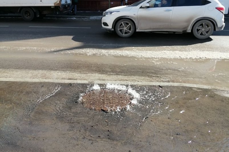 IrkutskMedia, 5 марта. Водопроводный колодец затопило в центре Иркутска. Коммунальная авария произошла перед перекрестком улиц Литвинова и Дзержинского близ здания ГУ МВД.