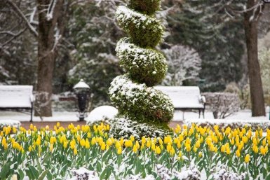 По области — переменная облачность, местами небольшой мокрый снег и снег. Ветер юго-восточный, юго-западный 5−10 м/с, местами порывы до 14 м/с, температура +5...+10°С, в пониженных формах рельефа 0...-5°С.