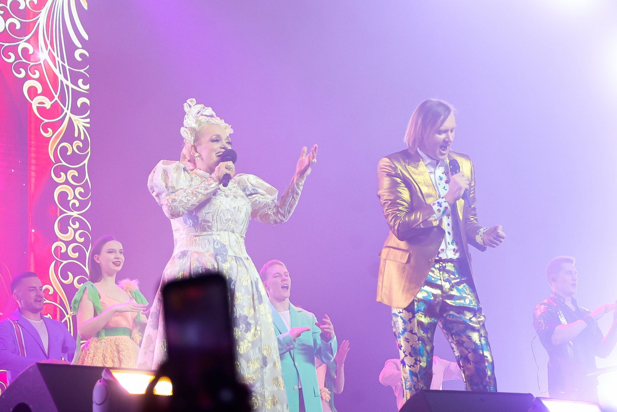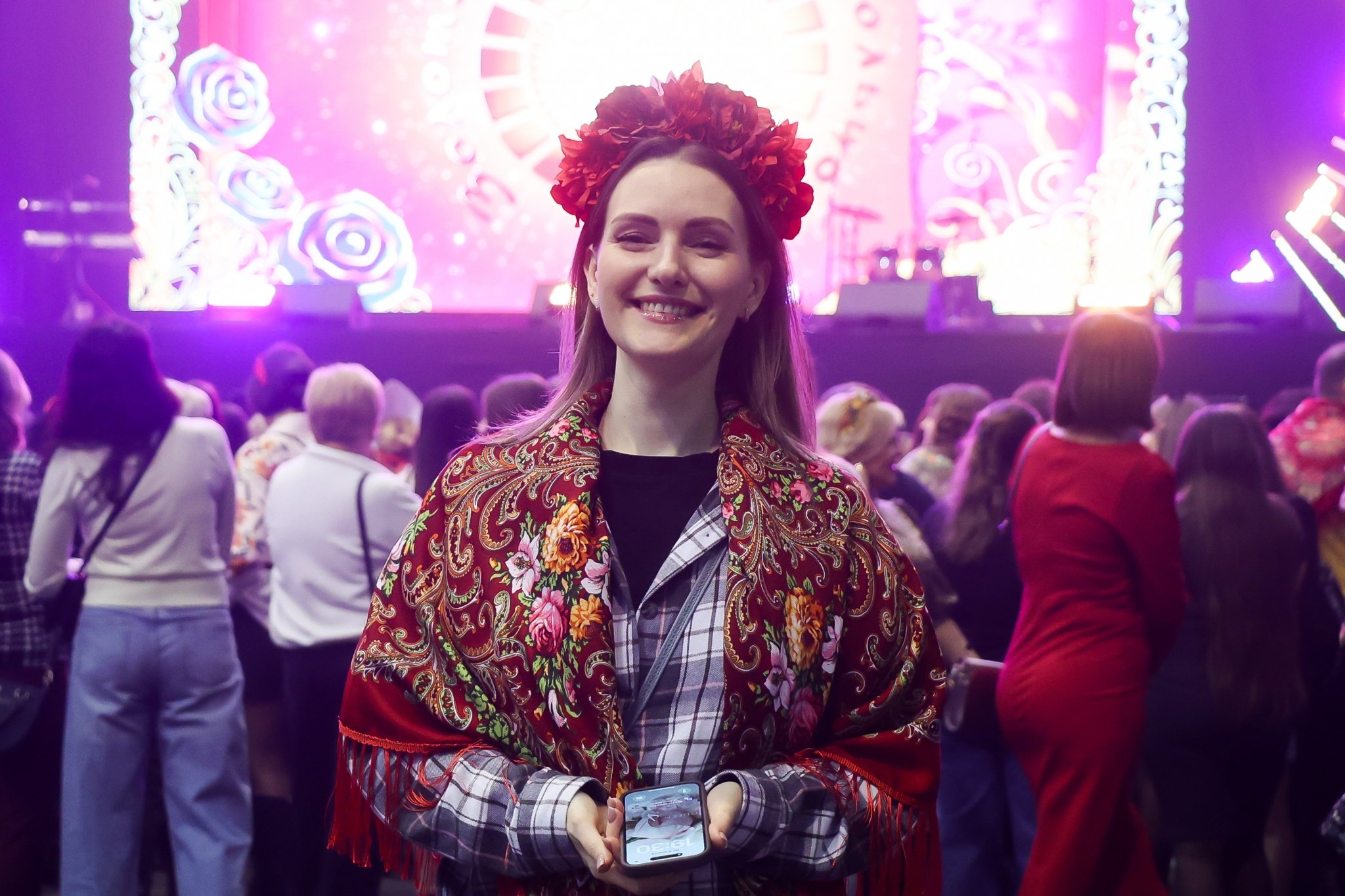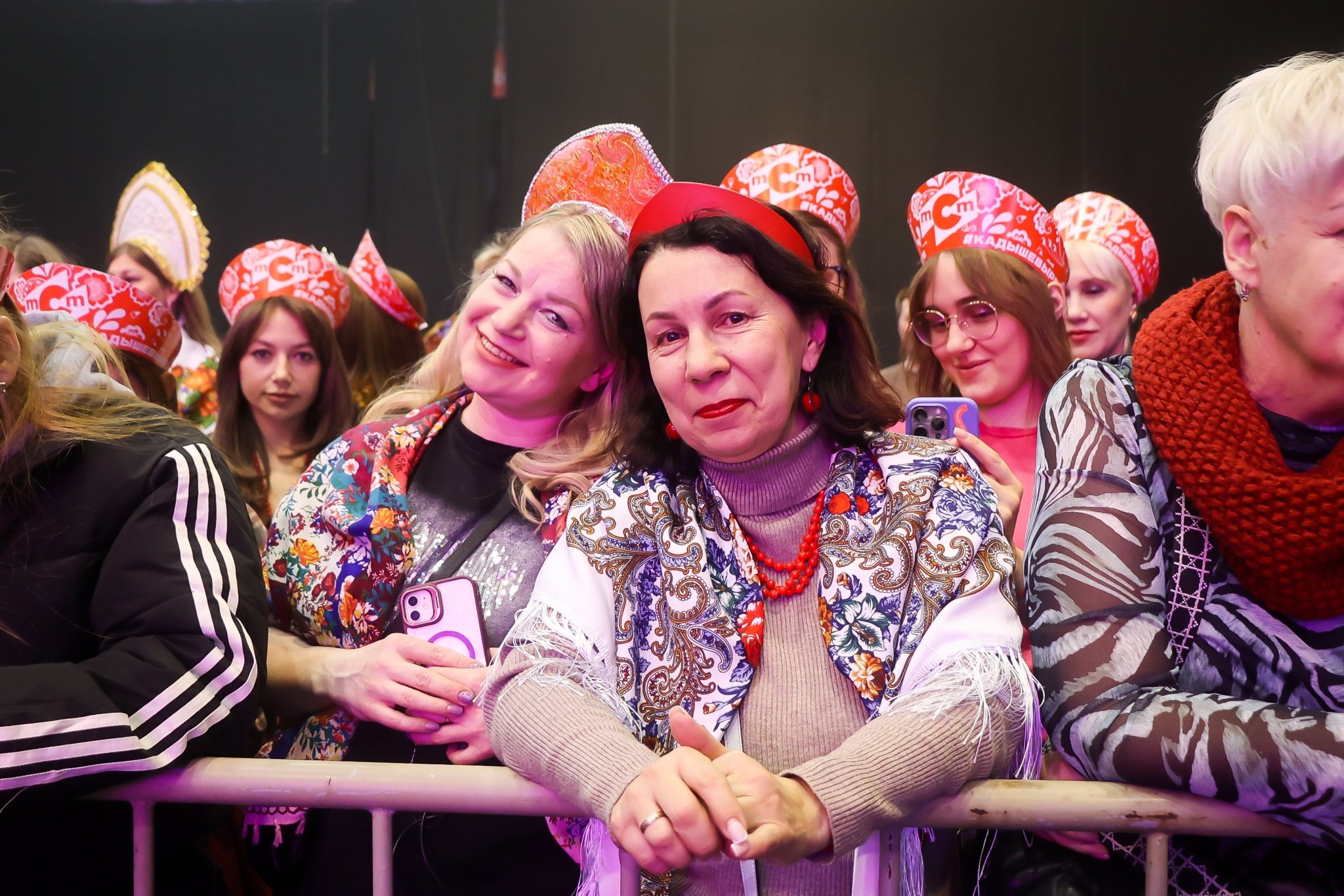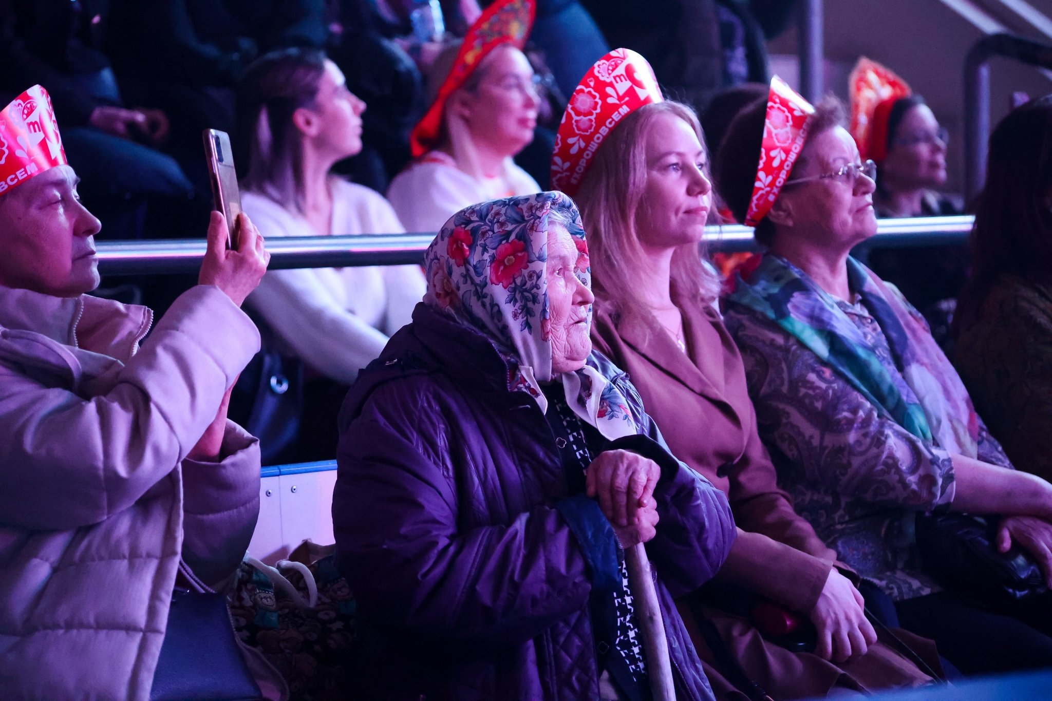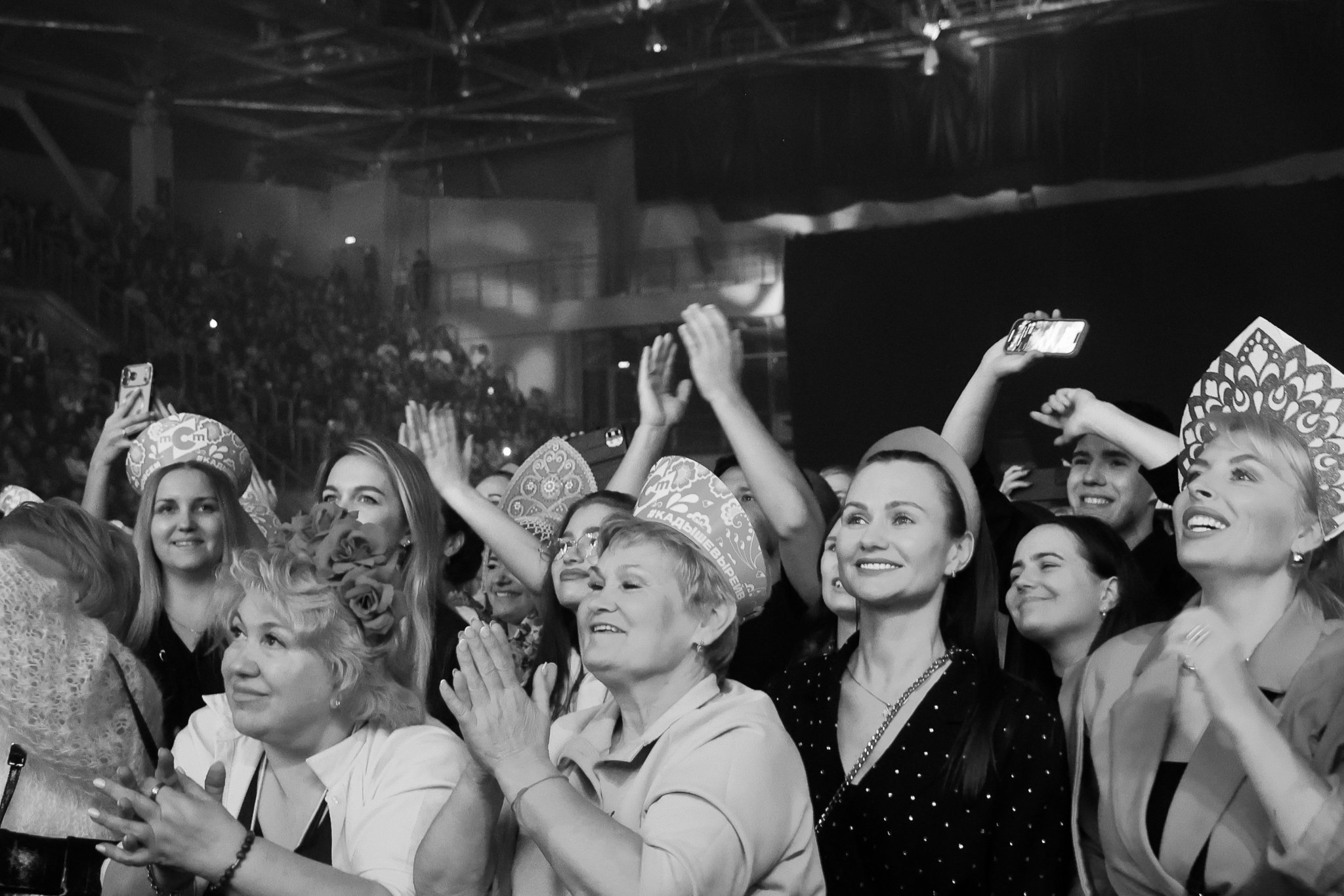 Одним из самых лучших моментов вечера стало трогательное поздравление. В зале присутствовала 92-летняя Ольга Ивановна, ветеран Великой Отечественной войны. Кадышевы со сцены поздравили героиню с 8 Марта, поблагодарив ее за все и пожелав крепкого здоровья и счастья. Атмосфера была по-настоящему особенной, и концерт в итоге превратился в веселый праздник русской культуры. Яркое событие в лицах иркутян — в нашем фоторепортаже.