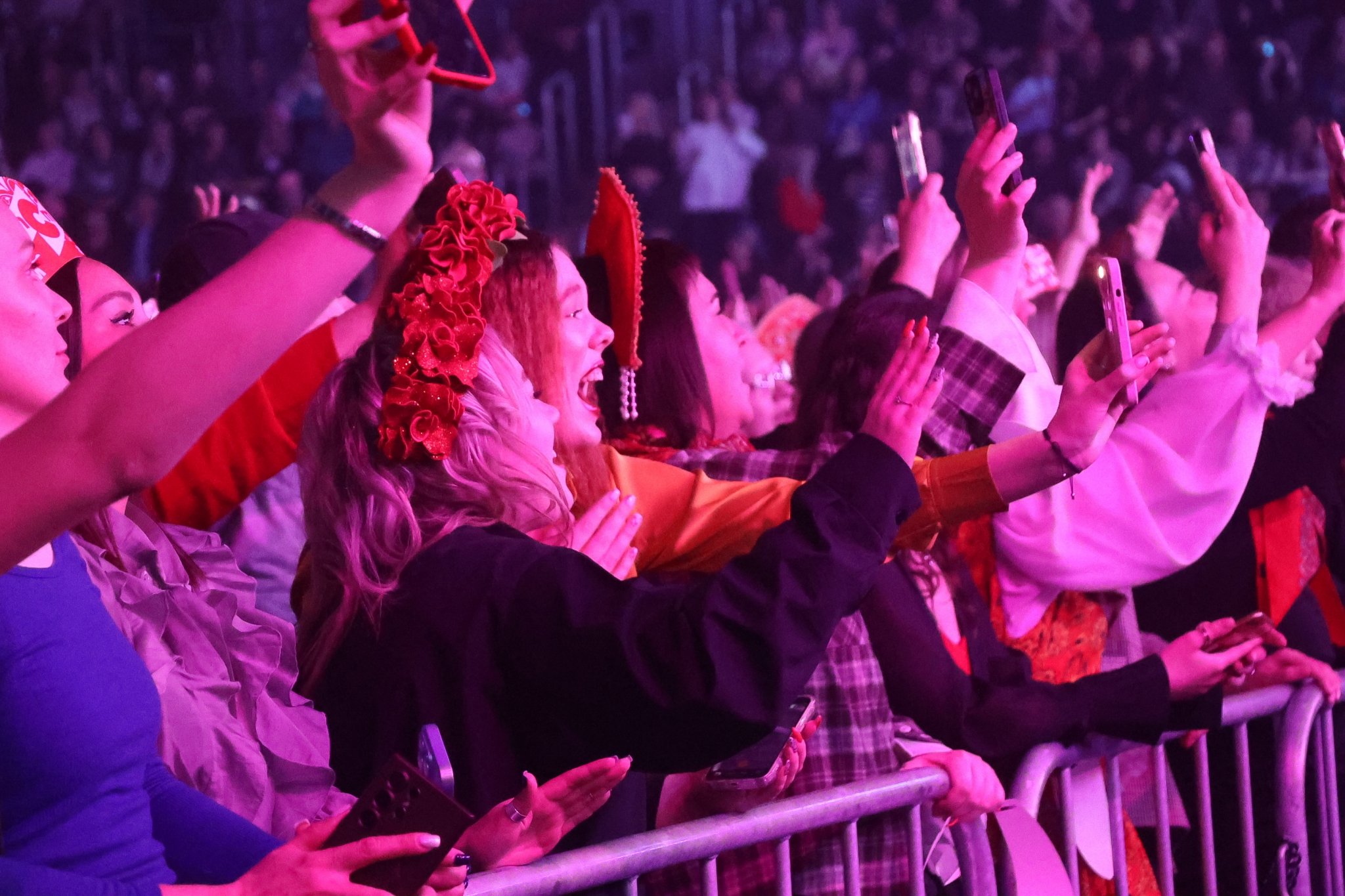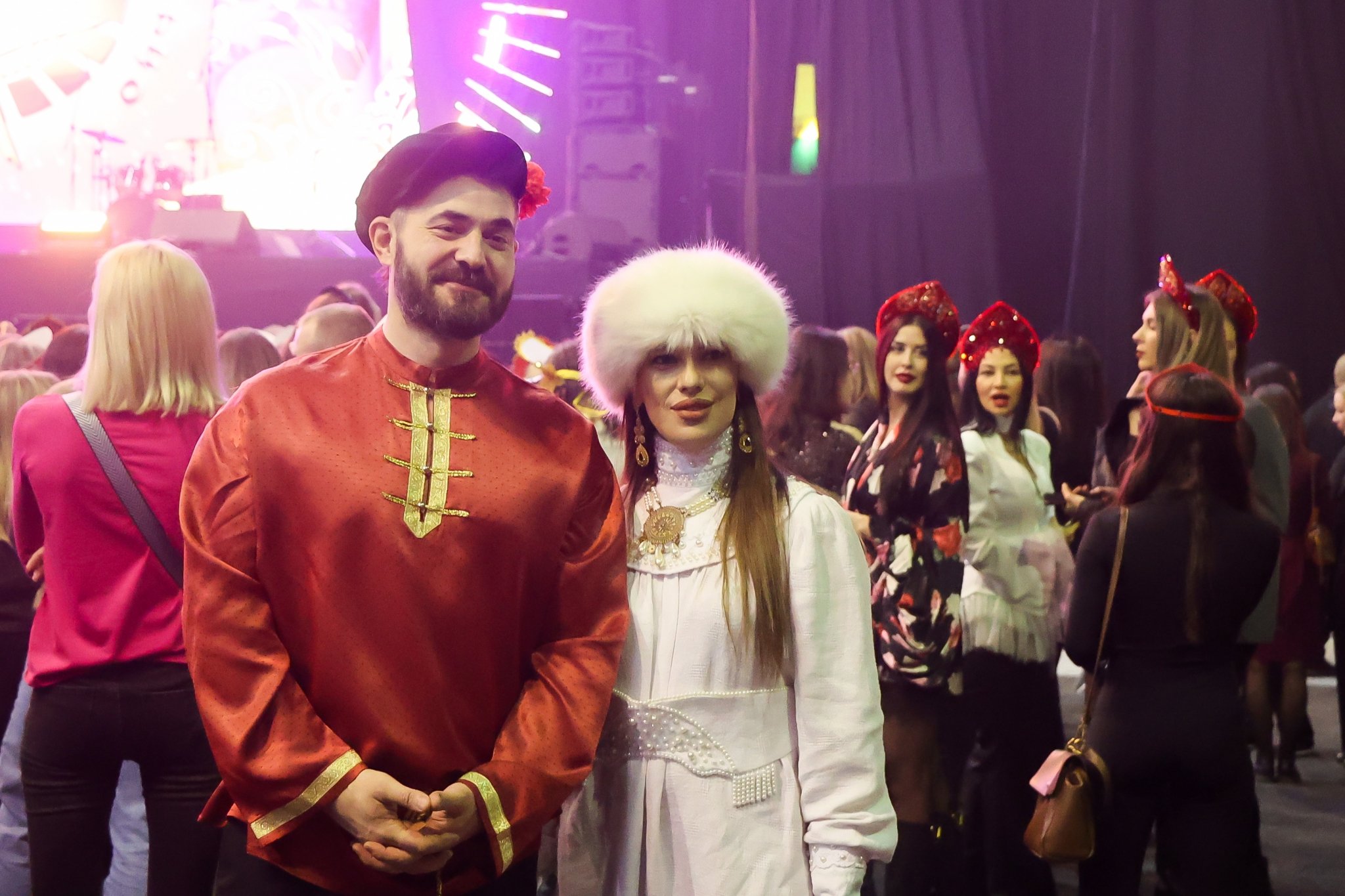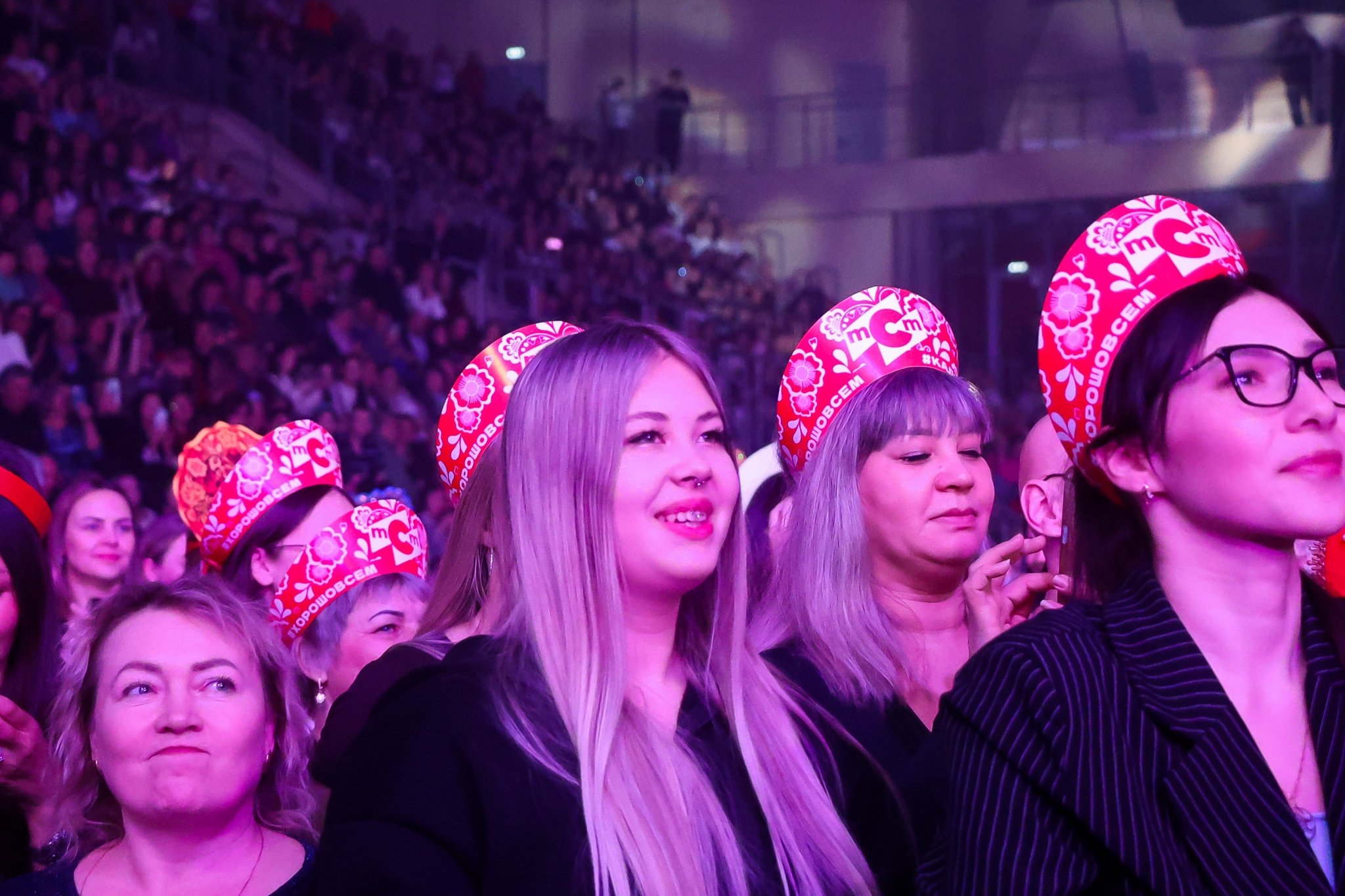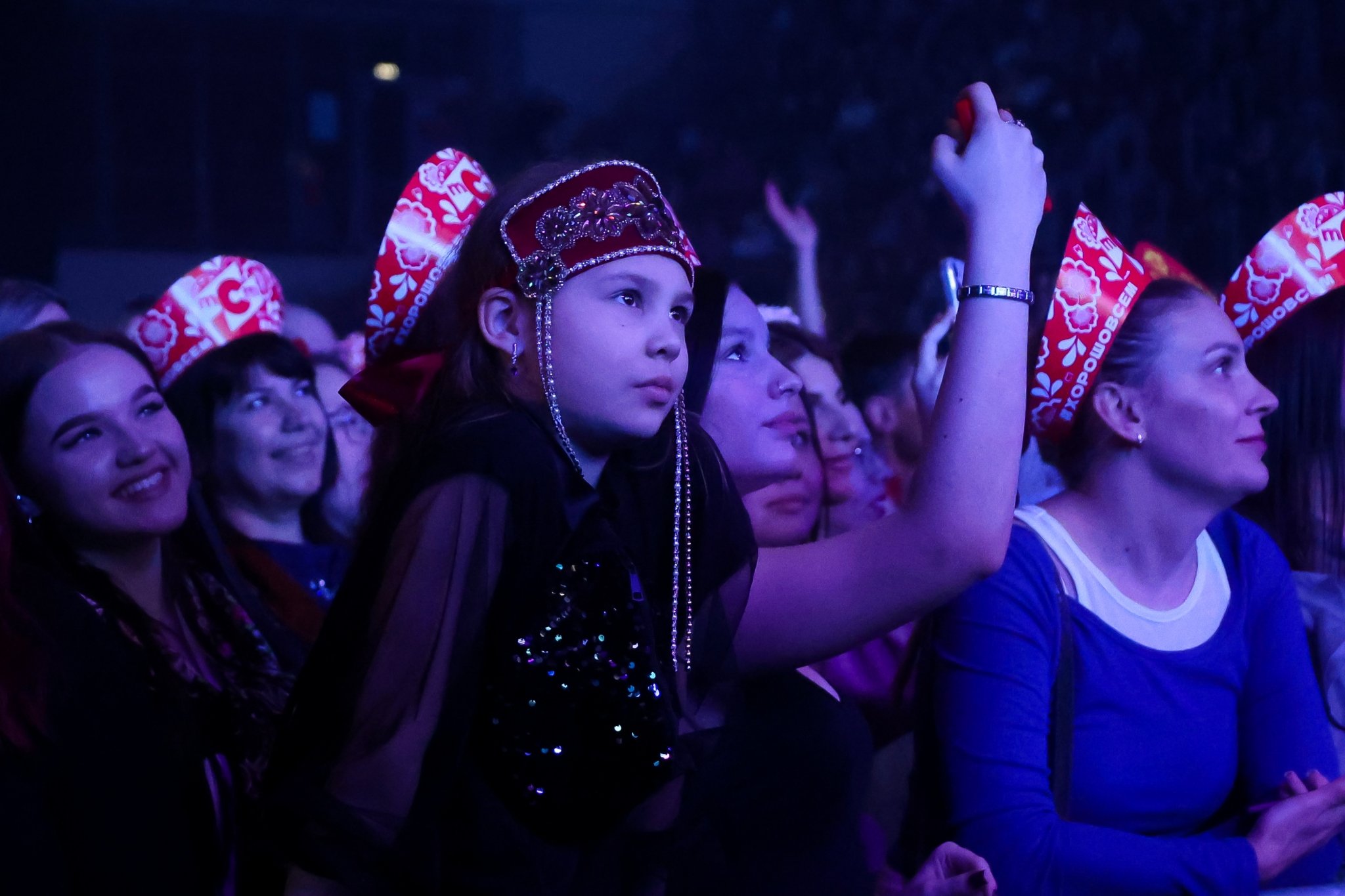 Одним из самых лучших моментов вечера стало трогательное поздравление. В зале присутствовала 92-летняя Ольга Ивановна, ветеран Великой Отечественной войны. Кадышевы со сцены поздравили героиню с 8 Марта, поблагодарив ее за все и пожелав крепкого здоровья и счастья. Атмосфера была по-настоящему особенной, и концерт в итоге превратился в веселый праздник русской культуры. Яркое событие в лицах иркутян — в нашем фоторепортаже.