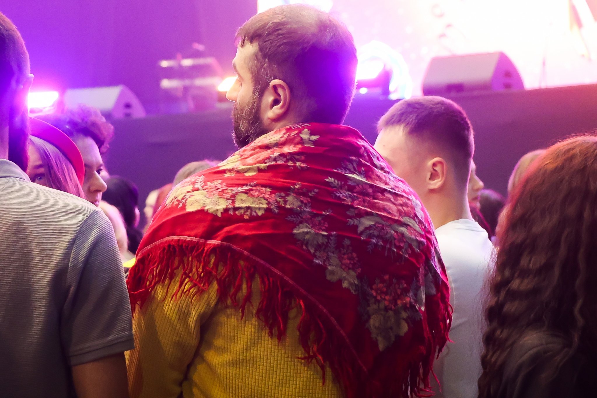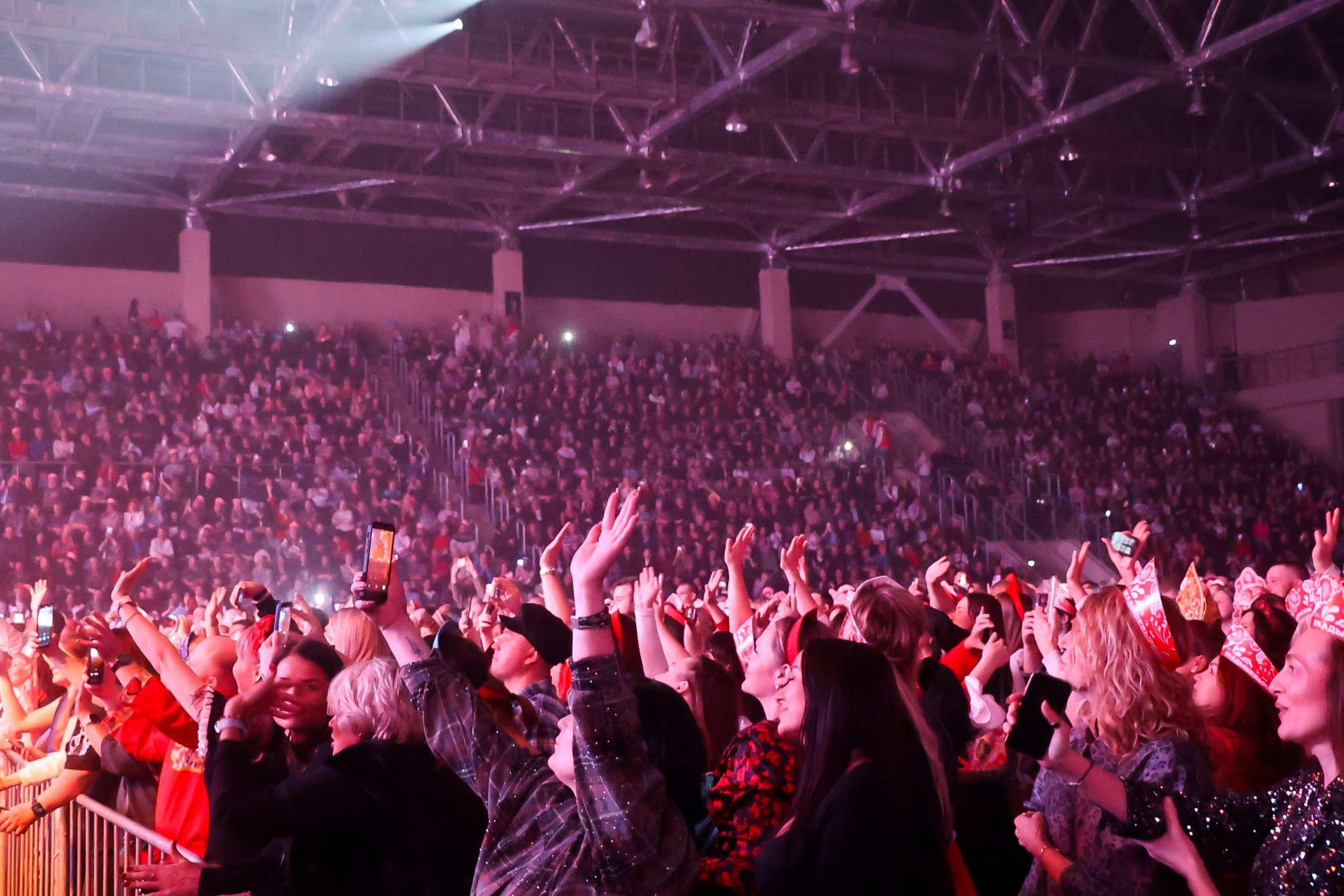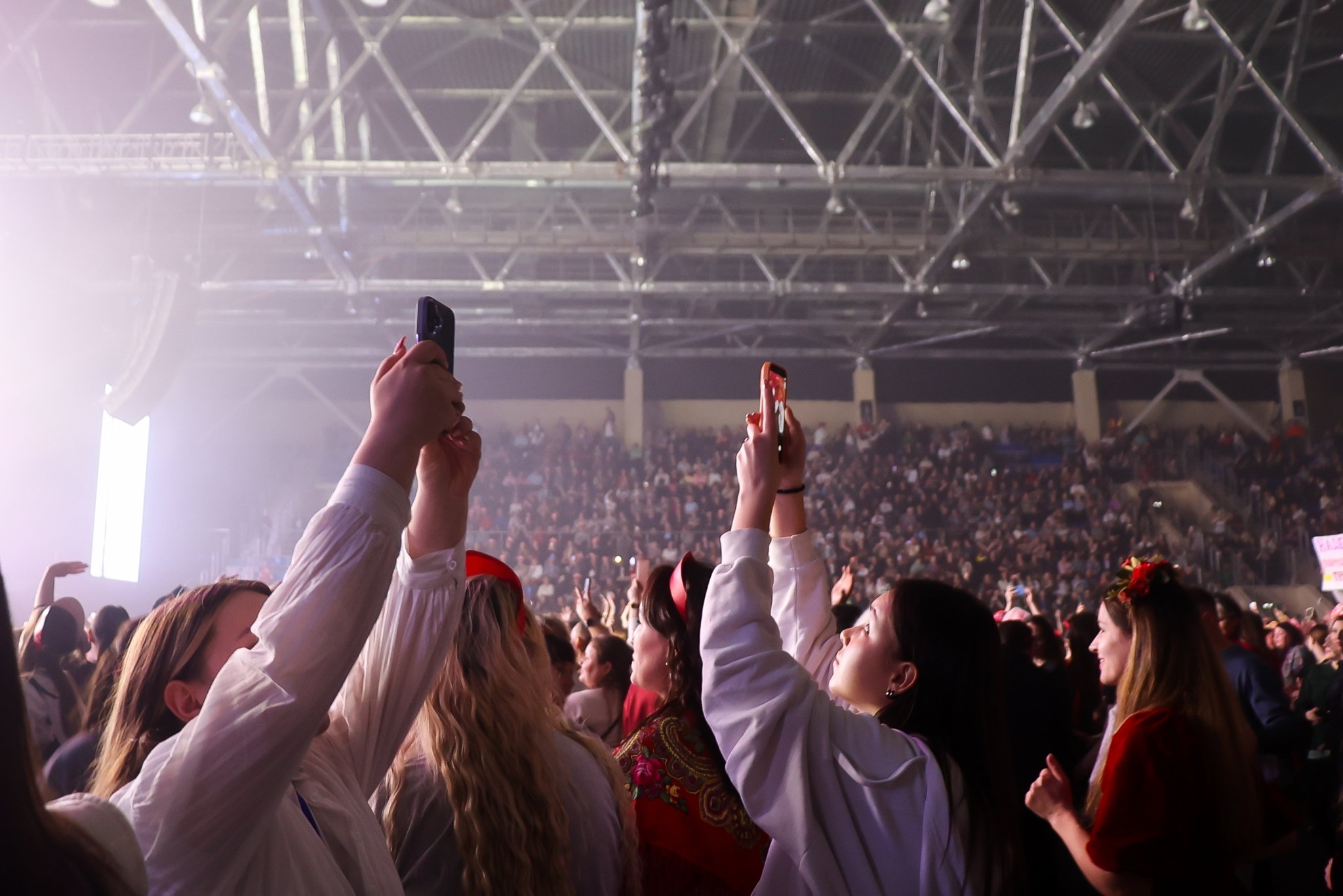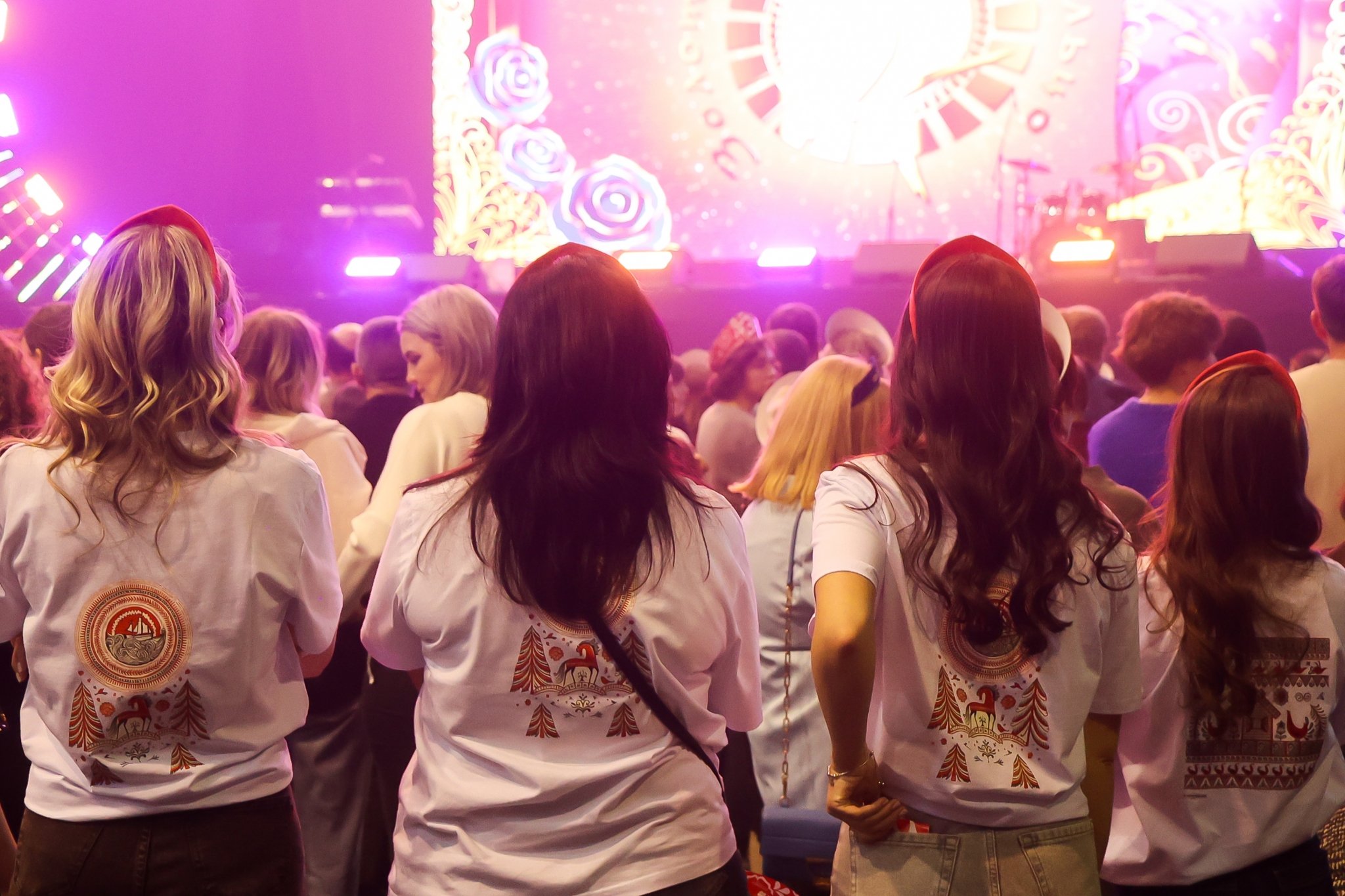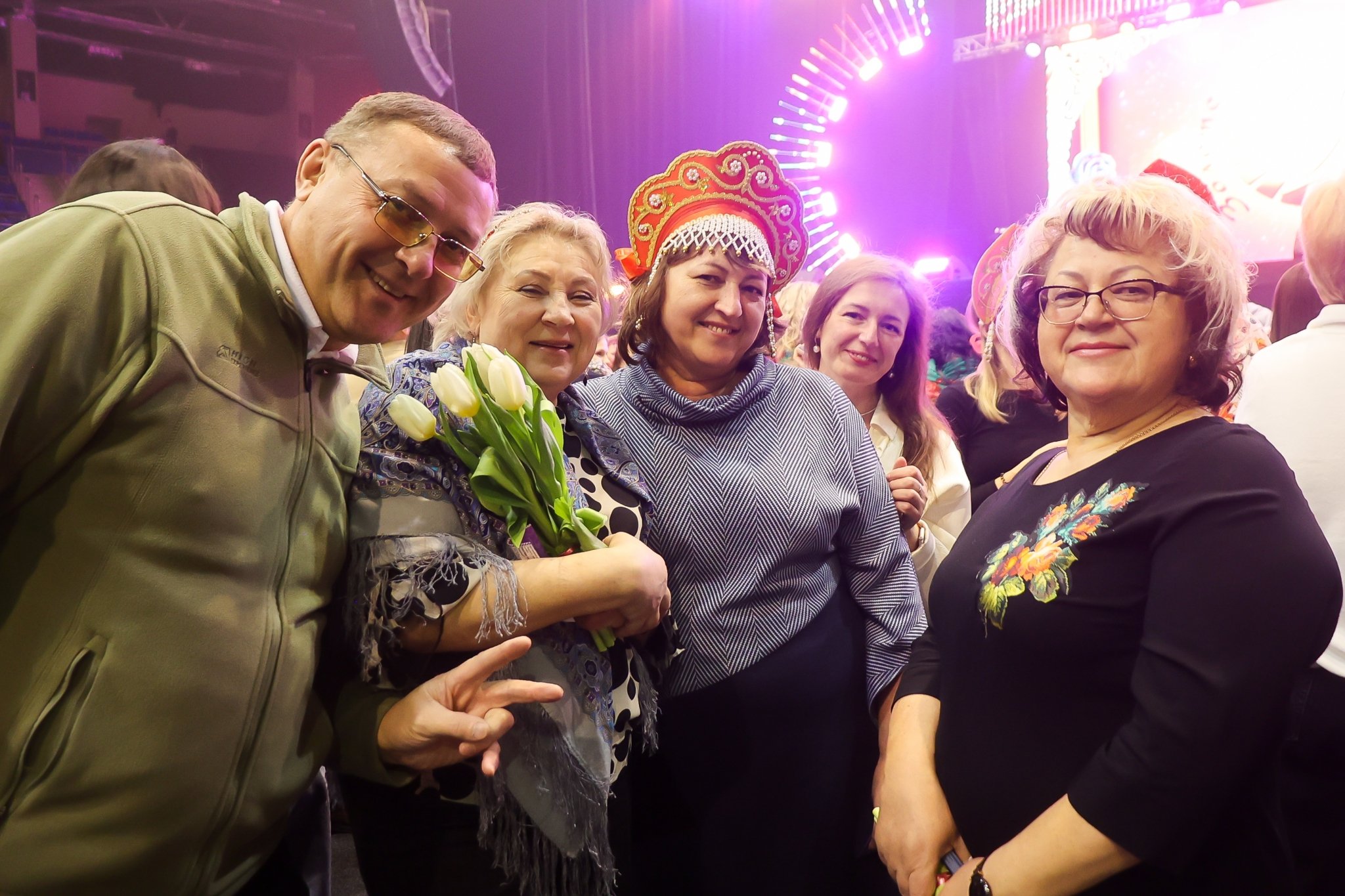 Одним из самых лучших моментов вечера стало трогательное поздравление. В зале присутствовала 92-летняя Ольга Ивановна, ветеран Великой Отечественной войны. Кадышевы со сцены поздравили героиню с 8 Марта, поблагодарив ее за все и пожелав крепкого здоровья и счастья. Атмосфера была по-настоящему особенной, и концерт в итоге превратился в веселый праздник русской культуры. Яркое событие в лицах иркутян — в нашем фоторепортаже.