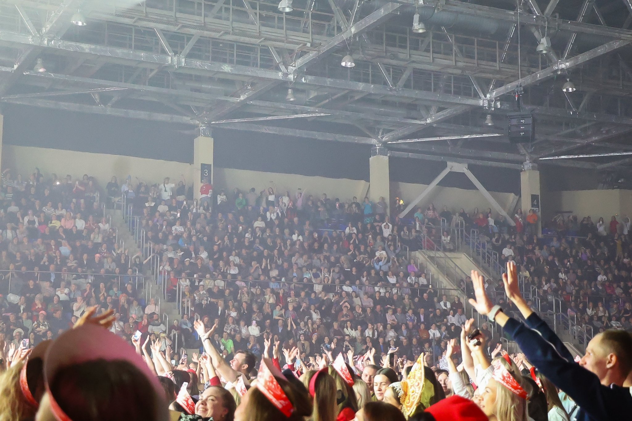Когда на сцену вышла Надежда Кадышева, зал взорвался бурными аплодисментами. Артистка тепло приветствовала публику в ответ и щедро дарила свои лучшие хиты. Некоторые песни по просьбе зала пришлось исполнять по два, а то и по три раза — зрители не скупились на эмоции и аплодисменты.