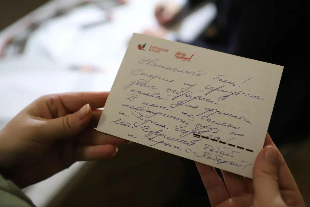 Все желающие могли присоединиться к акции, которую провели представители Народного фронта: написать письма военнослужащим, изготовить окопные спички или многофункциональные брелоки из паракорда. Игорь Кобзев и Руслан Болотов написали письма бойцам на передовую с пожеланиями успехов и побед.
