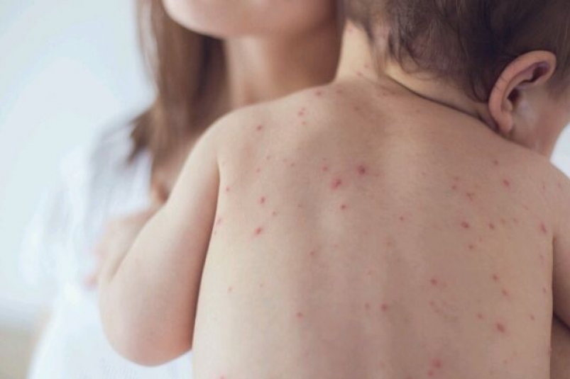 На четвертый-пятый день болезни к симптомам присоединяется сыпь. Сначала она покрывает лицо, область за ушами и шею. После чего постепенно спускается вниз, переходя на туловище, а затем на руки и ноги.