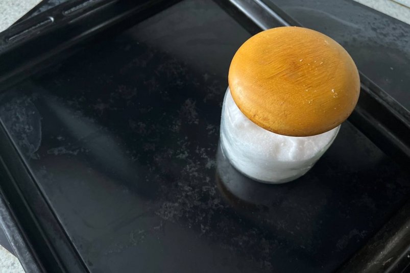 6. Для старых или сильно загрязнённых противней можно повторить процедуру или оставить на ночь;