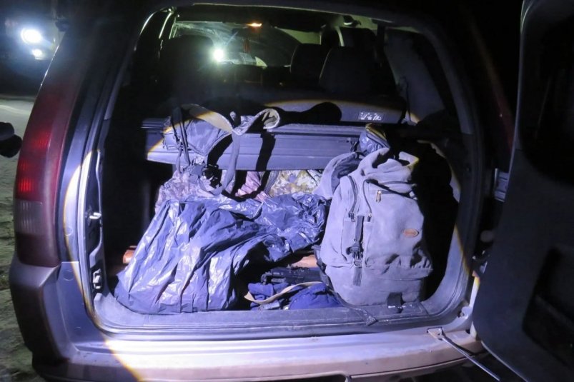 При осмотре транспортного средства полицейские нашли части разделанных туш косуль, четыре охотничьих ружья, боеприпасы, два ножа и маскировочный белый халат. По данным правоохранителей, добытые животные были разделаны на месте, после чего части туш упаковали в чёрный полиэтиленовый пакет и спрятали в рюкзак. Головы и шкуры подозреваемые оставили в лесополосе.