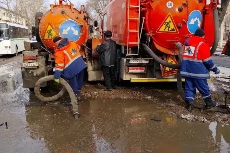 Специалисты МУП "Иркутскавтодор" ведут пропаривание трубы ливневой канализации и параллельно откачивают воду с проблемного участка.
