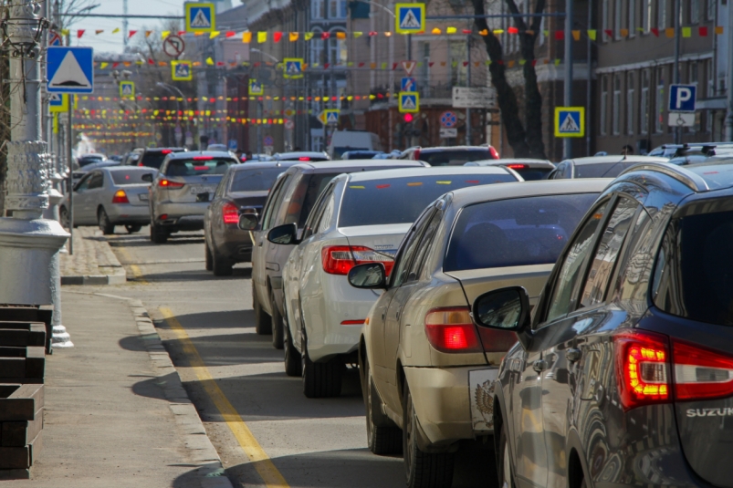 Движение затруднено на всех основных магистралях.