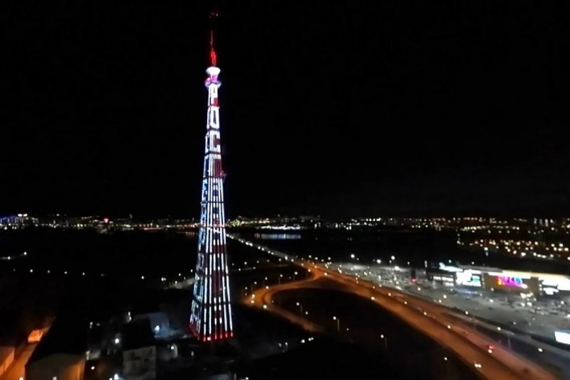 "Вышка окрасилась в цвета официальной символики ведомства, проявились надписи и сам флаг войск национальной гвардии", — говорится в сообщении.