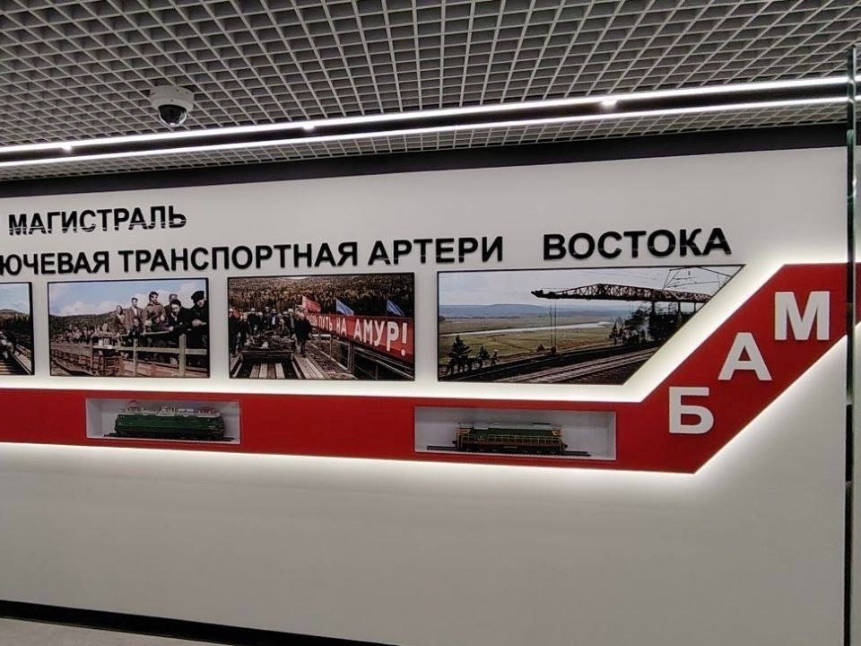 На стенах — ключевые вехи истории края: от основания острога в 1631 году и солеваренного завода до строительства Байкало-Амурской магистрали, организации нефтедобычи и завода полимеров, открытого в 2025 году.