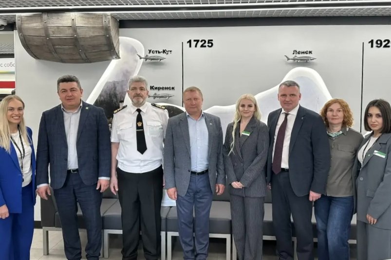 На стенах — ключевые вехи истории края: от основания острога в 1631 году и солеваренного завода до строительства Байкало-Амурской магистрали, организации нефтедобычи и завода полимеров, открытого в 2025 году.