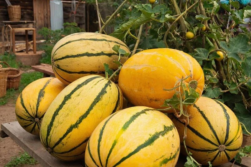 На одном кусте оптимально оставлять не больше шести плодов — даже если сажать растения плотнее. Под спелые дыни кладут подложки, чтобы они не впитывали влагу из почвы.