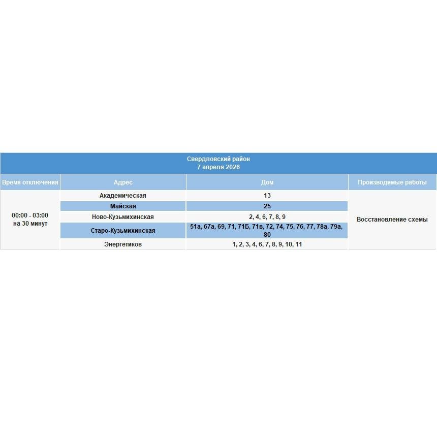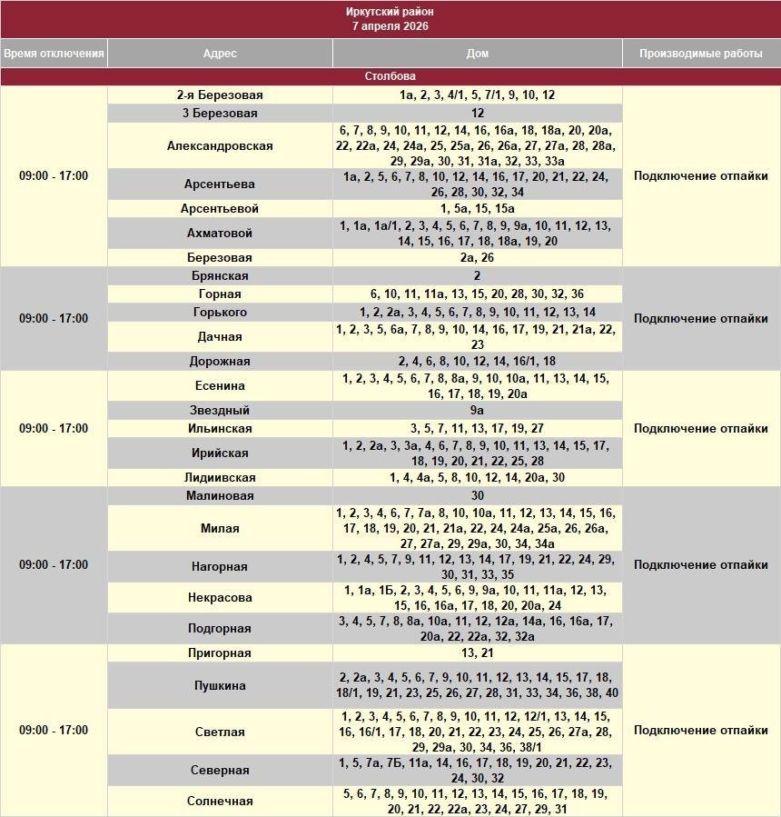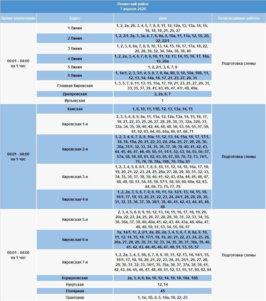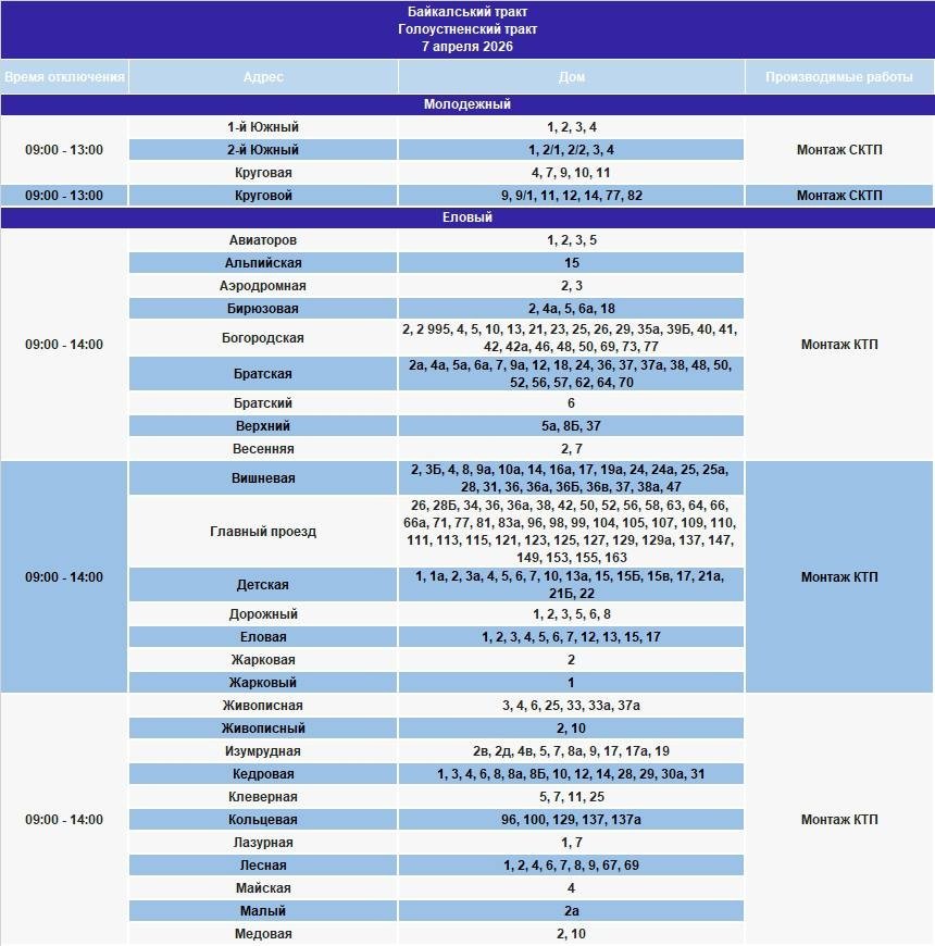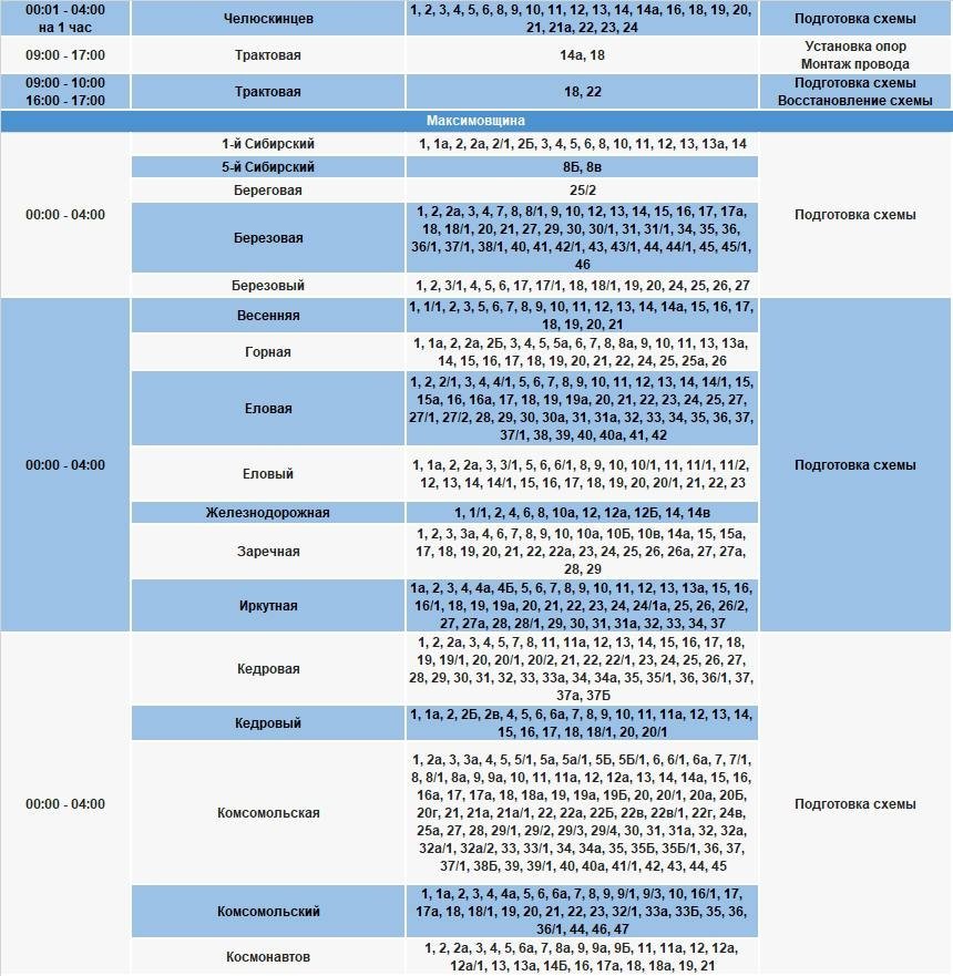 IrkutskMedia, 6 апреля. В части домов Иркутска и района, а также некоторых населенных пунктов Шелеховского района 7 апреля будет ограничено электроснабжение. В тг-канале "СВЕТ38" (18+) сообщается, что специалисты проведут неотложные работы на электросетях.