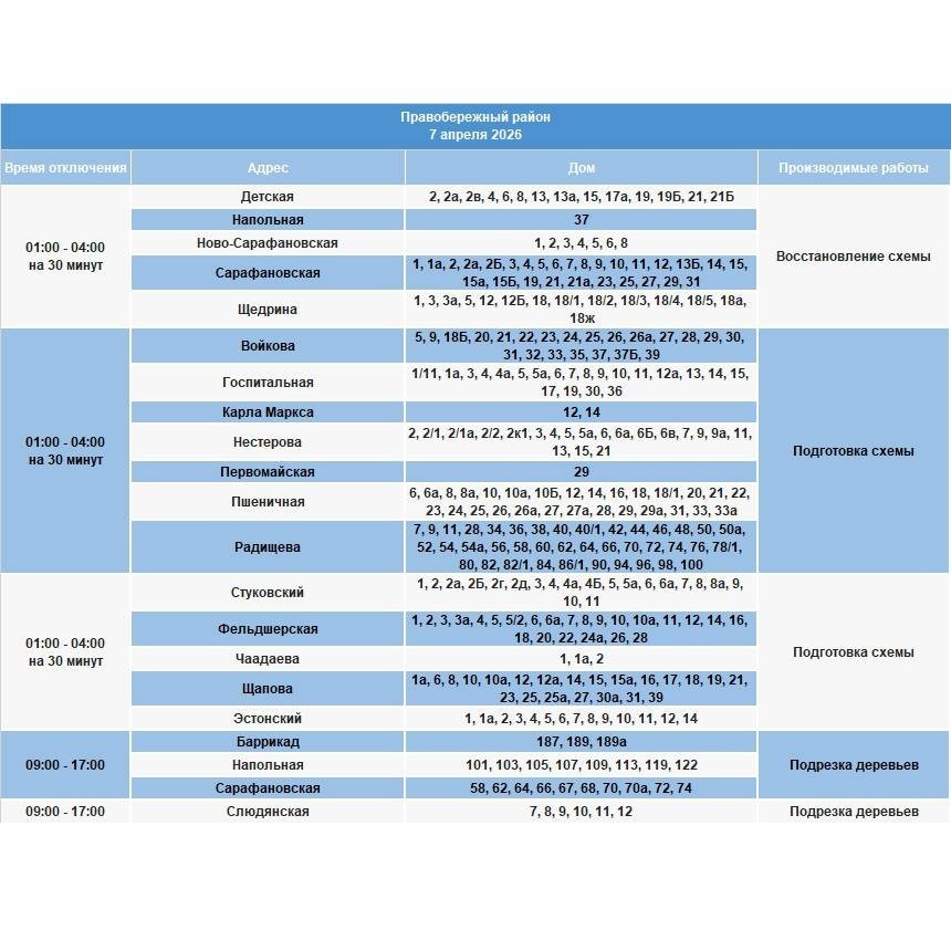 Меры примут для неотложных работ на электросетях (АДРЕСА)