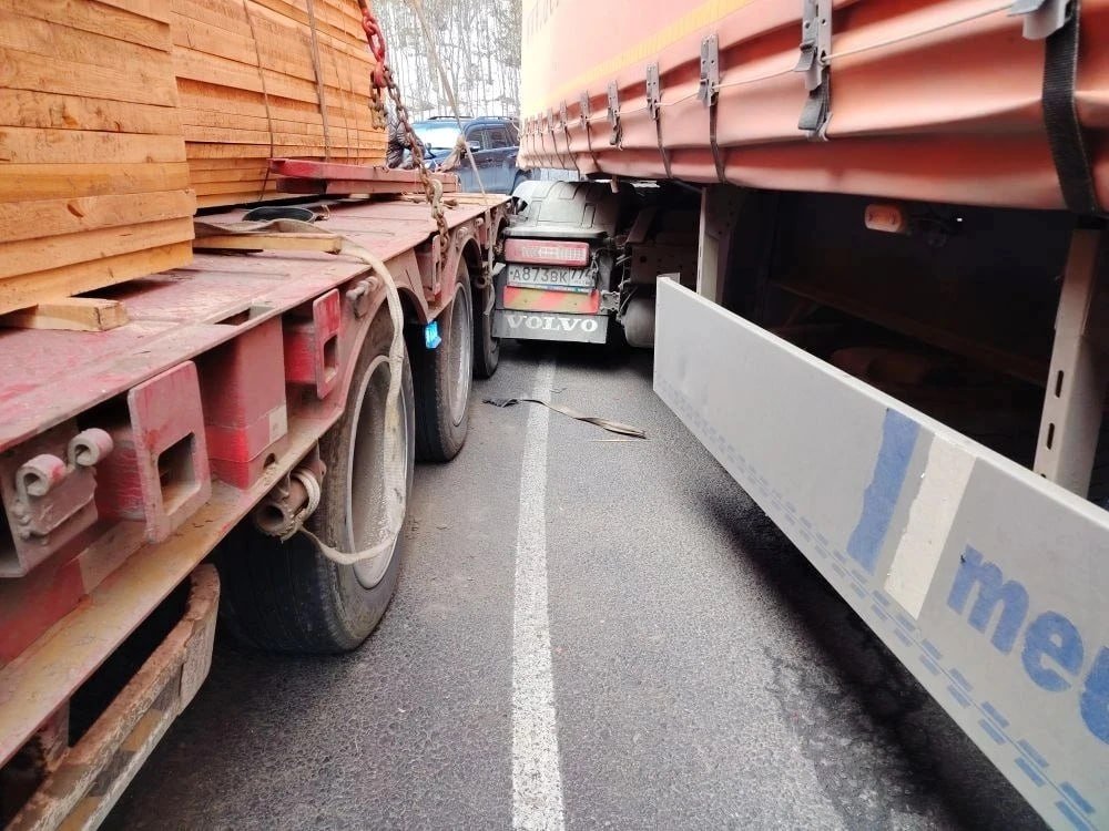 В результате аварии никто не пострадал, был причинен материальный ущерб. Кроме того, на этом же участке один большегруз "стащило" на обочину. В настоящее время движение в районе аварии полностью восстановлено.