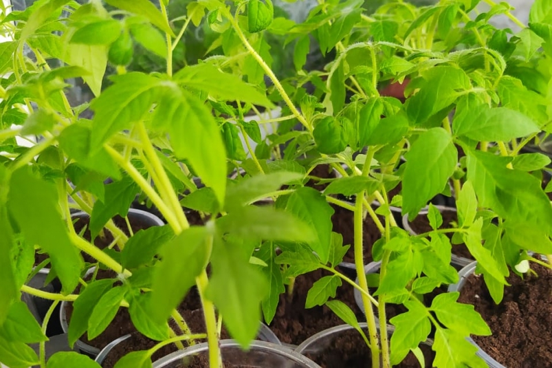 Этот способ безопасный, дешёвый и хорошо подходит для томатов, перцев и цветов, когда у растений появилось 2–3 настоящих листочка.
