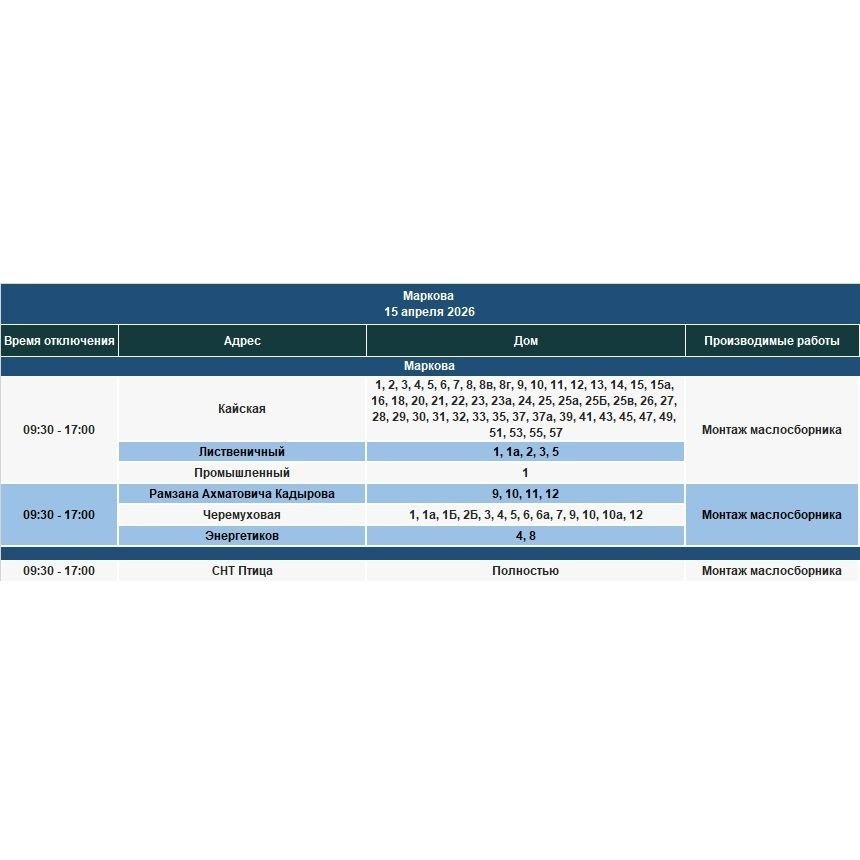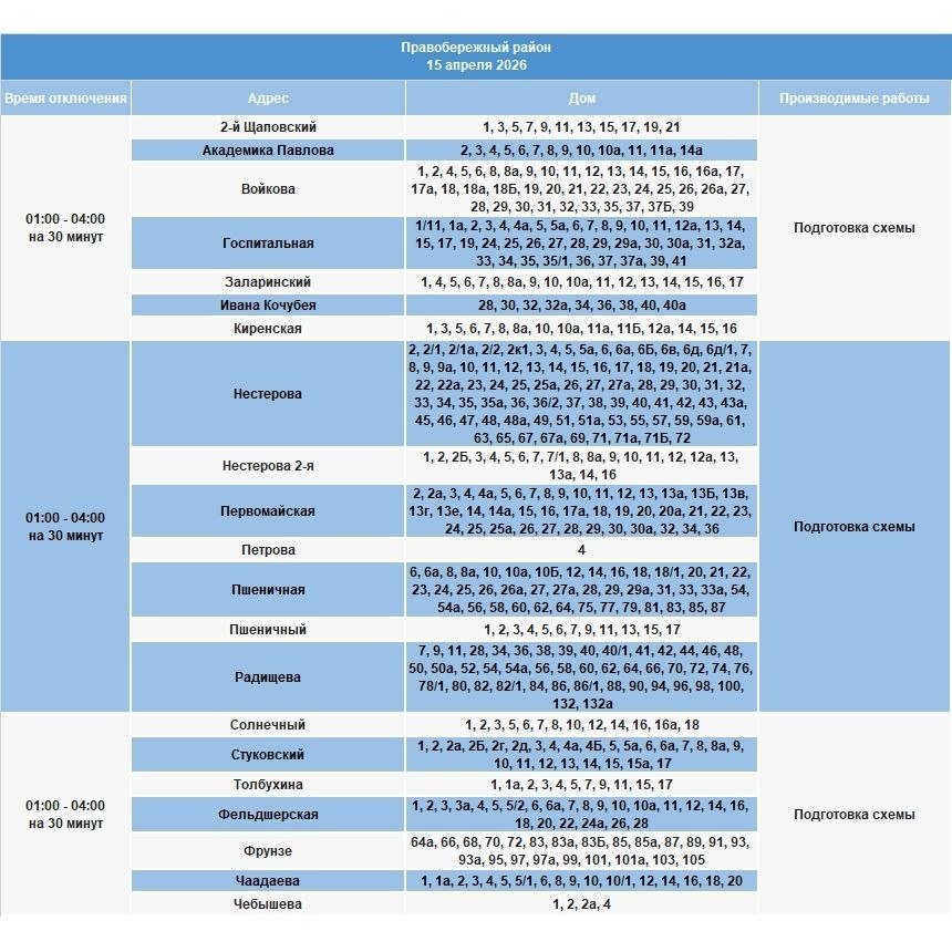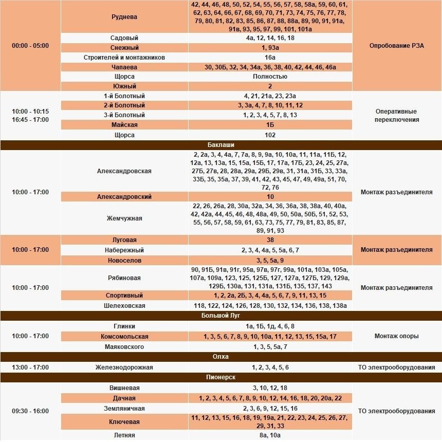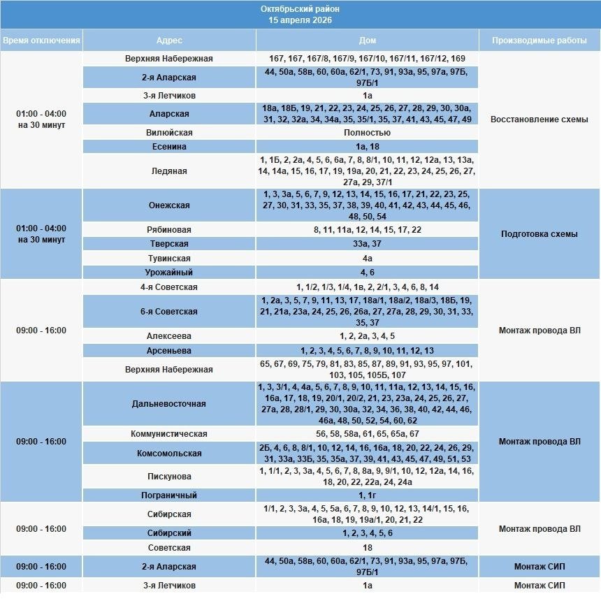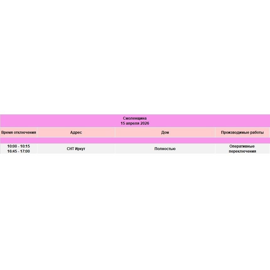 В тг-канале "СВЕТ38" (18+) сообщается, что специалисты проведут профилактические ремонтные и строительные работы на электросетях.