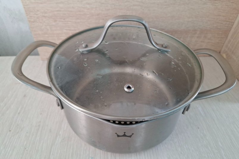 5. Как только вода закипит, накройте посуду подготовленной крышкой (с нанесённой пастой)
