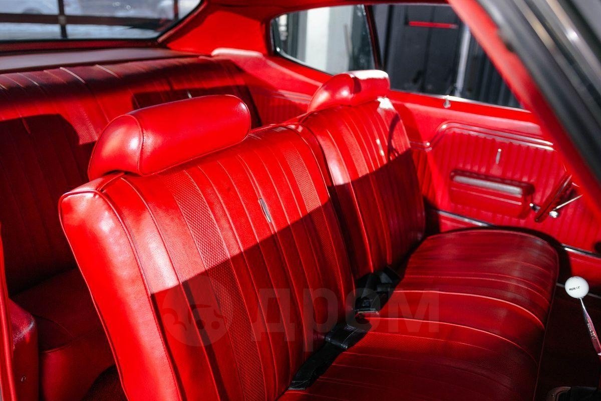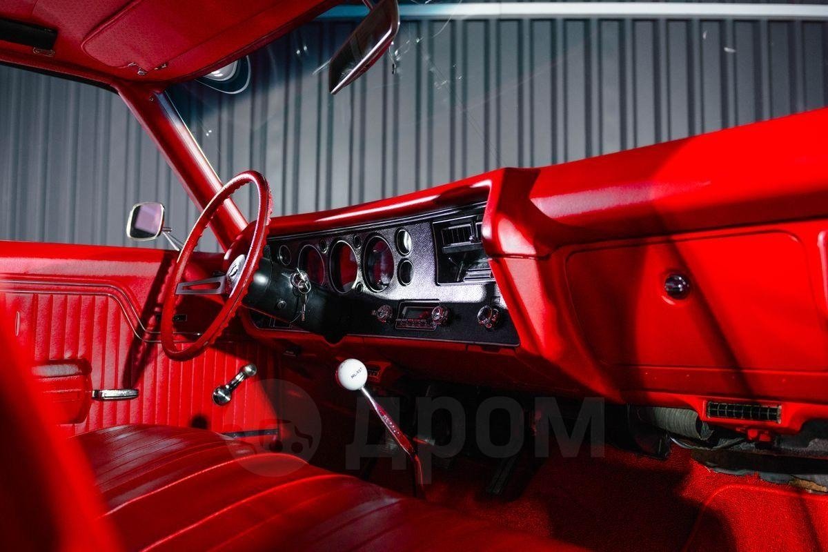 "Внутри этот Chevelle 70-го года может похвастаться красным салоном с виниловой обивкой, красным ковровым покрытием и ковриками, диванным сиденьем с передними ремнями безопасности, 3-спицевым рулевым колесом, стандартными приборами на приборной панели, магнитолой стороннего производителя, полированным рычагом переключения передач и большим багажником для всех необходимых вещей для автомобильных выставок", — говорится в объявлении о продаже машины.