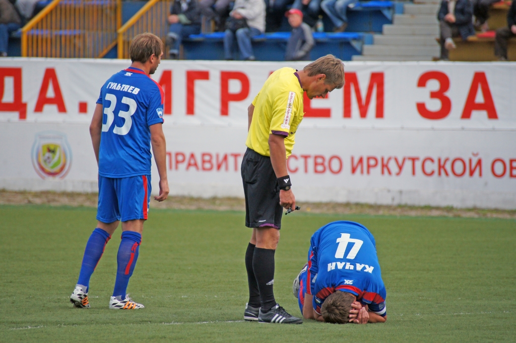 Мяч у капитана "Байкала", Фото с места события собственное. Фото: Автор фото: Владислав Костин, РИА IrkutskMedia