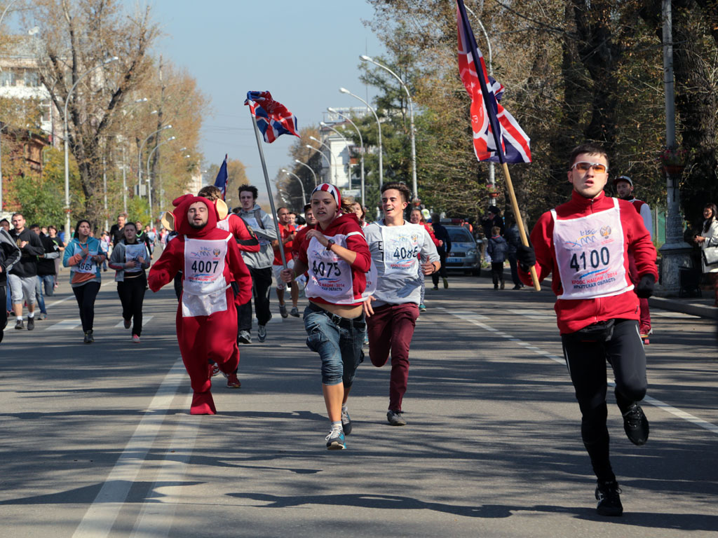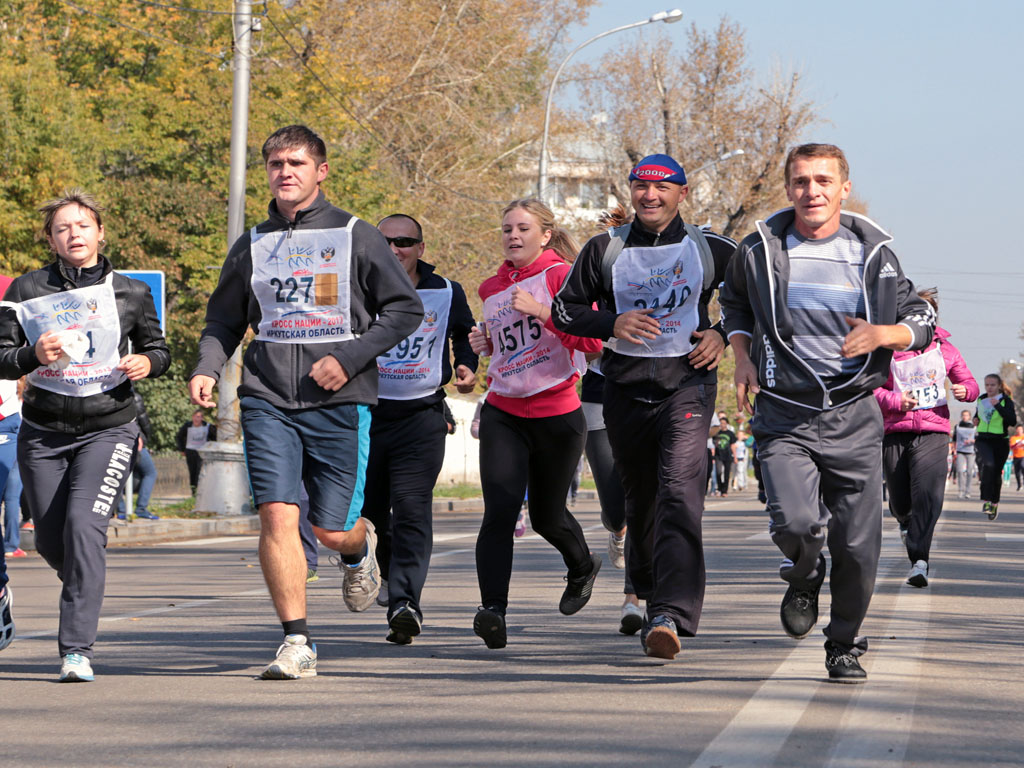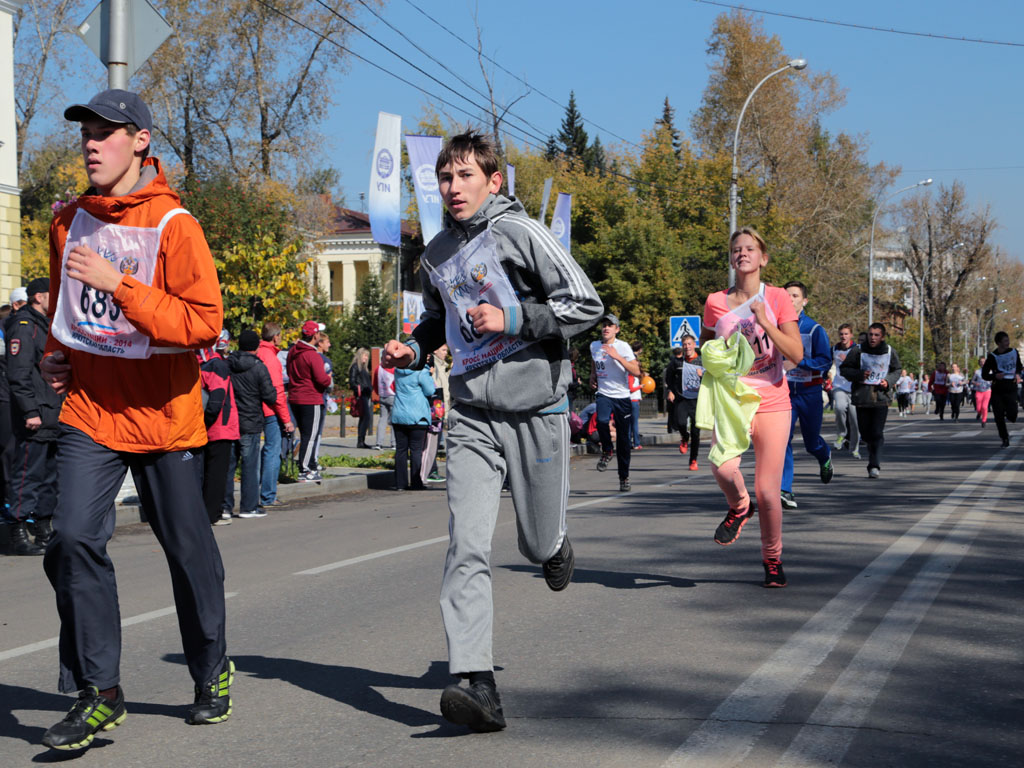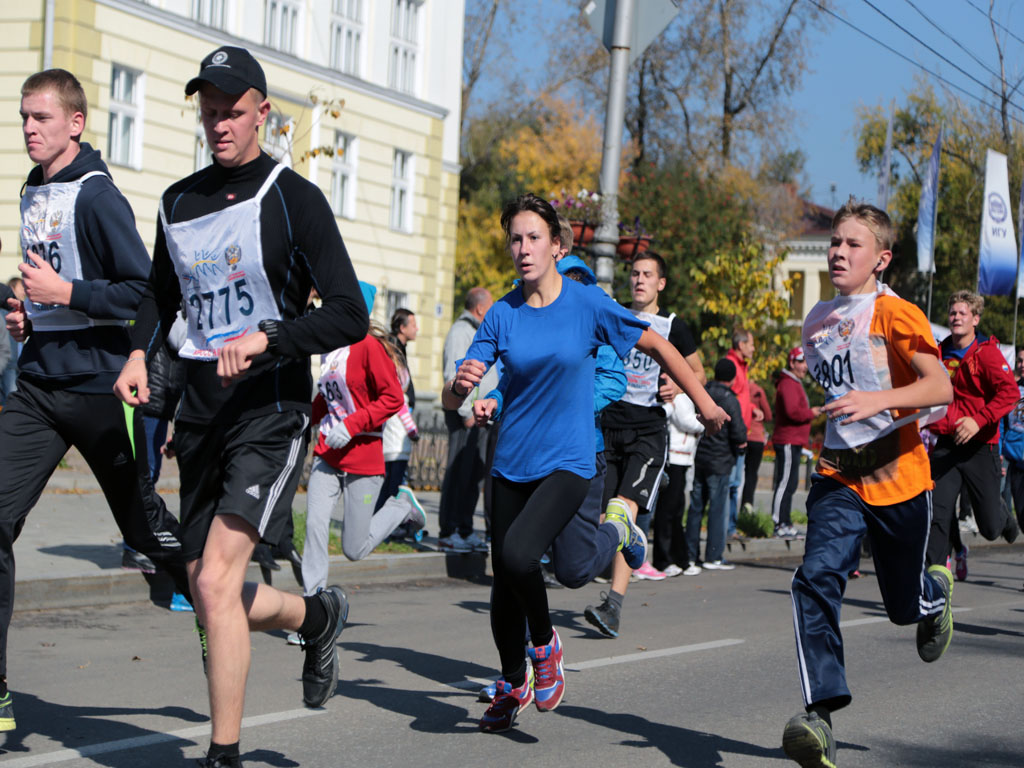 Самый массовый забег на 4 км начался в 13.00. В нем приняли участие профессиональные спортсмены и любители. Участники стартовали на бульваре Гагарина, затем проследовали по улицам Чкалова, 5-й Армии и Карла Маркса, после чего финишировали возле памятника Александру III.