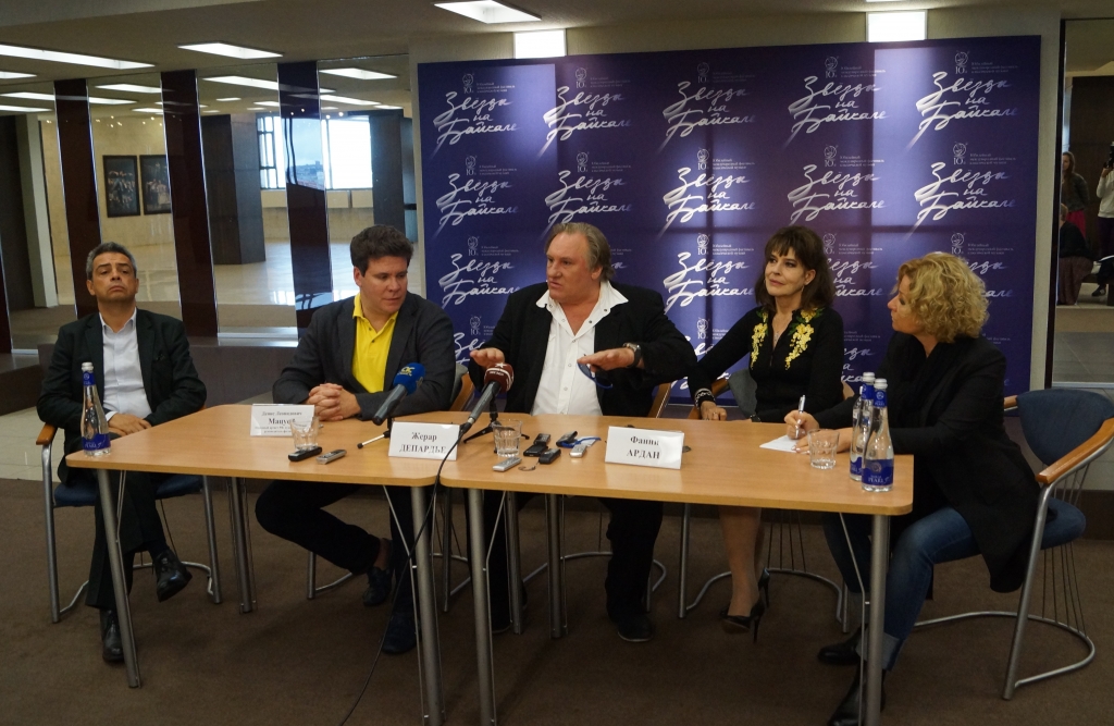 Жерар Депардье поприветствовал журналистов, по-русски сказав "добрый день". Найти общий язык участникам беседы помогали переводчики. Художественный руководитель фестиваля Денис Мацуев, который сопровождал актеров, отметил, что французская и русская культура очень близки, а также выразил благодарность гостям за их согласие прибыть на фестиваль в Иркутск.