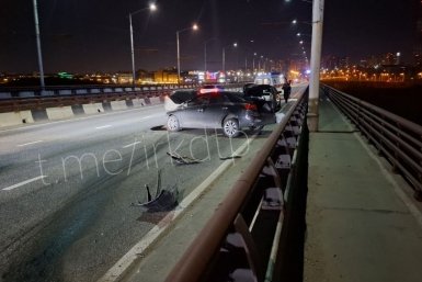 ДТП произошло на Академическом мосту в Иркутске На месте находится автомобиль скорой помощи 5 октября, 00:41