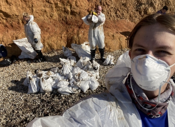 Студент ИГУ принимает участие в уборке Черноморского побережья от мазута. Фото: Из личного архива Артема Мещерякова