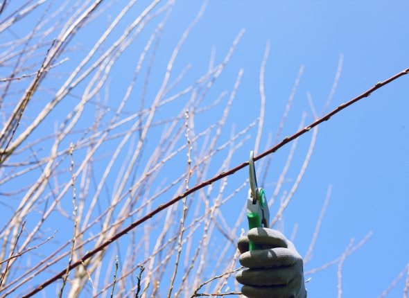В октябре удалите все ветки, растущие внутрь кроны. Не допускайте переплетения и трения ветвей друг о друга, так как они особенно уязвимы под тяжестью снега. Также избавьтесь от растущих вверх побегов, оставляя лишь крепкие основные ветви под углом 45–60 градусов, которые обеспечат обильный урожай.