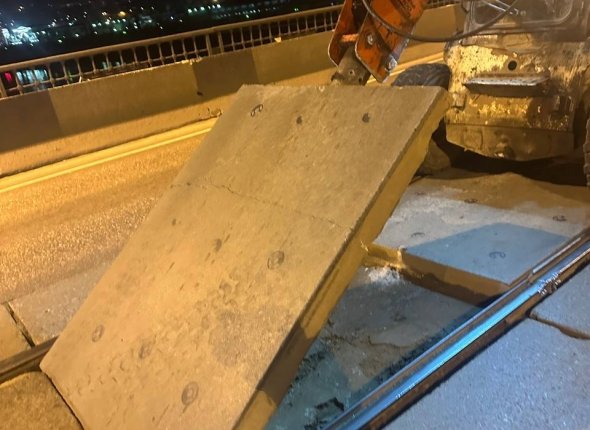IrkutskMedia, 25 октября. Замену восьми бетонных плит произвели вдоль трамвайных путей на Глазковском мосту в Иркутске. Работы проводила бригада МУП "Служба эксплуатации мостов" накануне, 24 октября. Об этом рассказали в пресс-службе администрации города.