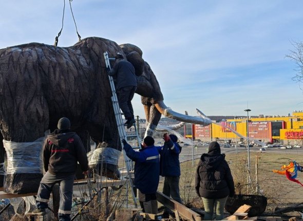 IrkutskMedia, 27 октября. Монументальную фигуру мамонта установили в Иркутске. Скульптура украсила территорию рядом с "Домом природы" Иркутской зоогалереи.