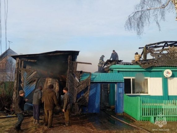 Огнеборцы ликвидировали открытое возгорание за 1 час 12 минут. Пожар уничтожил гараж, находившееся внутри транспортно средство, дровянник. Кроме того, в результате происшествия повреждены стены бани и жилого дома, кровли двух домов. Огнеборцам удалось спасти от перехода огня жилой дом.