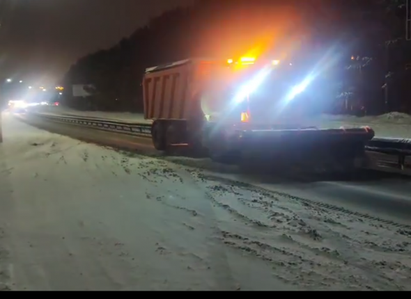 Уточняется, что всего за минувшую ночь дорожники использовали 300 тонн противогололедных материалов и песко-соляной смеси. Помимо комбинированных машин на участках автодорог также задействовали тракторы и автогрейдеры.