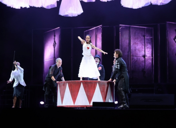 — Музыка в спектакле — это самое главное для меня. Поскольку я в принципе люблю работать с пьесой, с литературным источником. После того как я расписала для себя скелет либретто, я стала по каждому эпизоду "копать". Вся история начала складываться, когда я нашла увертюру — самую первую сцену. Это была увертюра к опере Верди "Сицилийская вечерня" (12+). Я "перекопала" очень много музыки, и вдруг нахожу эту увертюру и вижу сцену сразу же. Второе везение у меня было, когда я наткнулась на редакцию Вивальди "Четырёх сезонов" (12+) композитора Рихтера. И мы с Анатолием Гонье "сшили такой лоскутный ковёр", но мне кажется, что эта лоскутность не должна сбить зрителя с толку, — поделилась Ирина Ляховская.