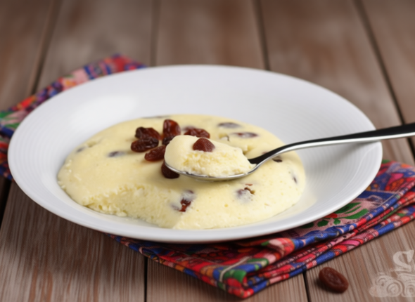 Масса поднимется и станет плотной, нежной и ароматной. Можно подавать прямо так, но эффектнее выглядит, если перевернуть на тарелку, а сверху украсить изюмом или орехами.