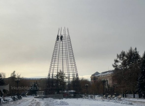 IrkutskMedia, 12 ноября. В Иркутске вовсю устанавливают новогоднюю елку. Каркас уже почти смонтирован, скоро специалисты примутся "одевать" зеленую красавицу.