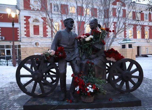 IrkutskMedia, 15 ноября. Торжественное открытие памятника народным артистам Виталию Венгеру и Наталии Королевой состоялось в Иркутске. Скульптурная композиция расположилась около Дома актера и камерной сцены Иркутского драмтеатра им. Н. П. Охлопкова. Актеры запечатлены в образах героев спектакля Григория Горина "Поминальная молитва" (16+) — молочника Тевье и его жены Голды. Впервые эта постановка была представлена иркутянам 27 лет назад — в 1998 году, сообщили в пресс-службе администрации.