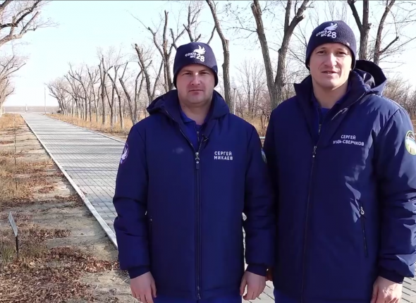 IrkutskMedia, 25 ноября. Бортинжинер Сергей Микаев и командир корабля "Союз МС-28" Герой России Сергей Кудь-Сверчков передали видео-привет из Центра подготовки космонавтов им. Ю. А. Гагарина жителям Иркутска. 27 ноября состоится запуск космического корабля с космодрома Байконур.