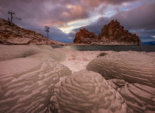 IrkutskMedia, 6 декабря. Байкальская природа не перестает удивлять своей уникальной красотой. Фотограф Станислав Толстнев запечатлел "зефирки" у скалы Шаманка на острове Ольхон. Как отметил мужчина на своей странице в "ВК" (12+), обычно он не снимает на камеру это место, так как ранее им было сделано уже множество фото скалы.