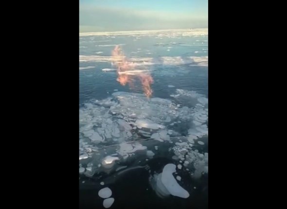 IrkutskMedia, 16 декабря. В районе острова Ольхон на Байкале засняли редкое природное явление. Местные гиды обнаружили участок с высокой концентрацией метана и продемонстрировали его воспламенение. Видео опубликовано в тг-канале (18+) "Байкальский маяк".