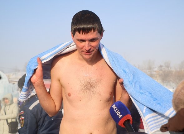 IrkutskMedia, 19 января. Корреспондент ИА IrkutskMedia впервые окунулся в купель на Крещение. Напомним, что температура в Иркутске сегодня днем около -32°C.