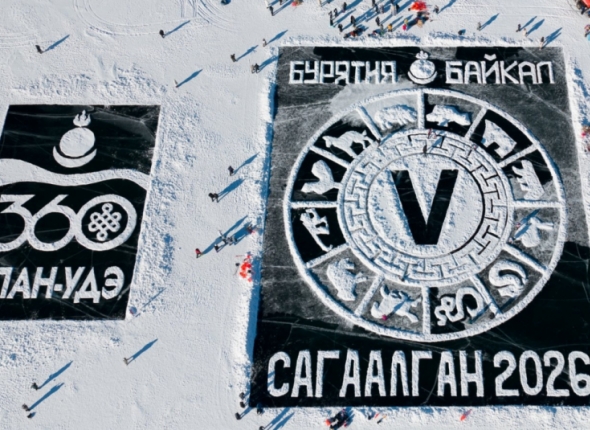 На Байкале создали гигантскую снежную открытку к празднованию Сагаалгана