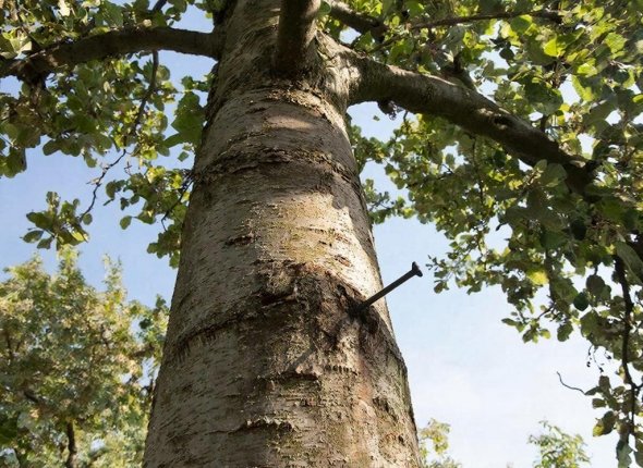 Риск гнили. Вбитый гвоздь остается внутри навсегда. Он может стать источником гнили, которую вы не увидите снаружи, пока дерево не ослабнет или не сломается.