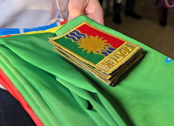 По традиции каждому мужчине вручили с собой вещмешки, теплые спальники и, конечно же, флаги города Братска и шевроны с изображением герба Братска.
