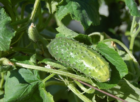 Герман F1. Плоды этого гибрида небольшие и не превышают 12 см. Кожица тонкая с мелкими бугорками, при этом семена практически отсутствуют. Не нуждается в опылении. При засухе он не горчит и отлично подходит для засолки в целом виде. С одного куста можно собрать до 8 кг огурцов.
