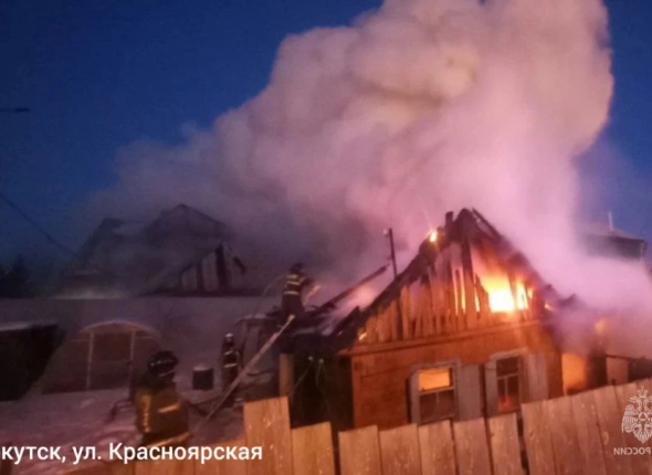 Пожар произошел в двухквартирном доме на улице Красноярской в Иркутске накануне, 28 февраля, в 06.52. На момент прибытия первого подразделения он был полностью охвачен пламенем, произошло частичное обрушение кровли. Из дома самостоятельно эвакуировались два человека.